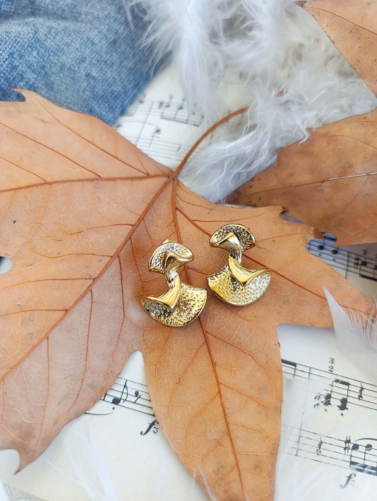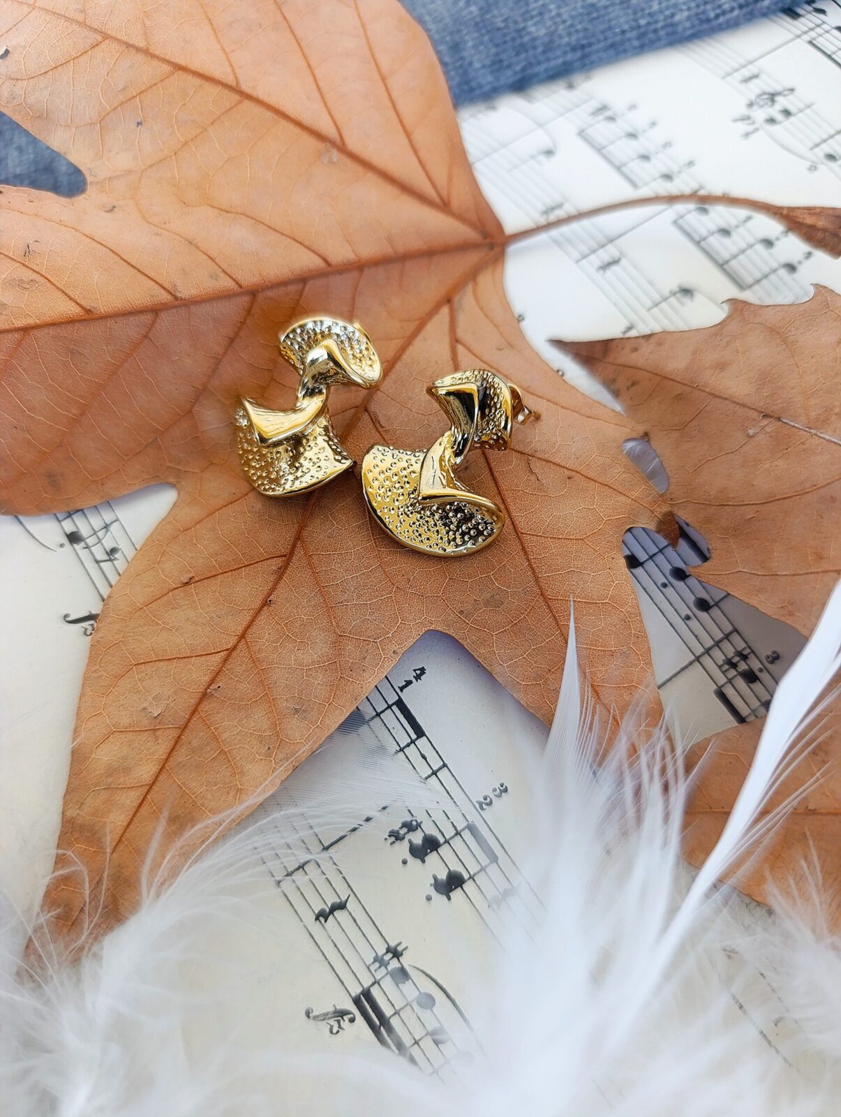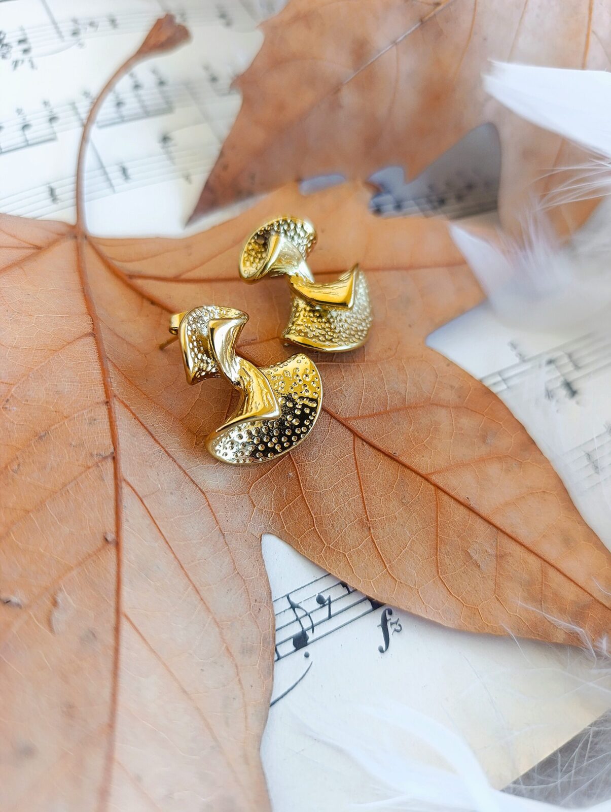 Αναδείξτε το στυλ σας με ατσάλινα σκουλαρίκια σε χρυσό τόνο με ιδιαίτερο abstract σχεδιασμό και ανάγλυφη υφή.