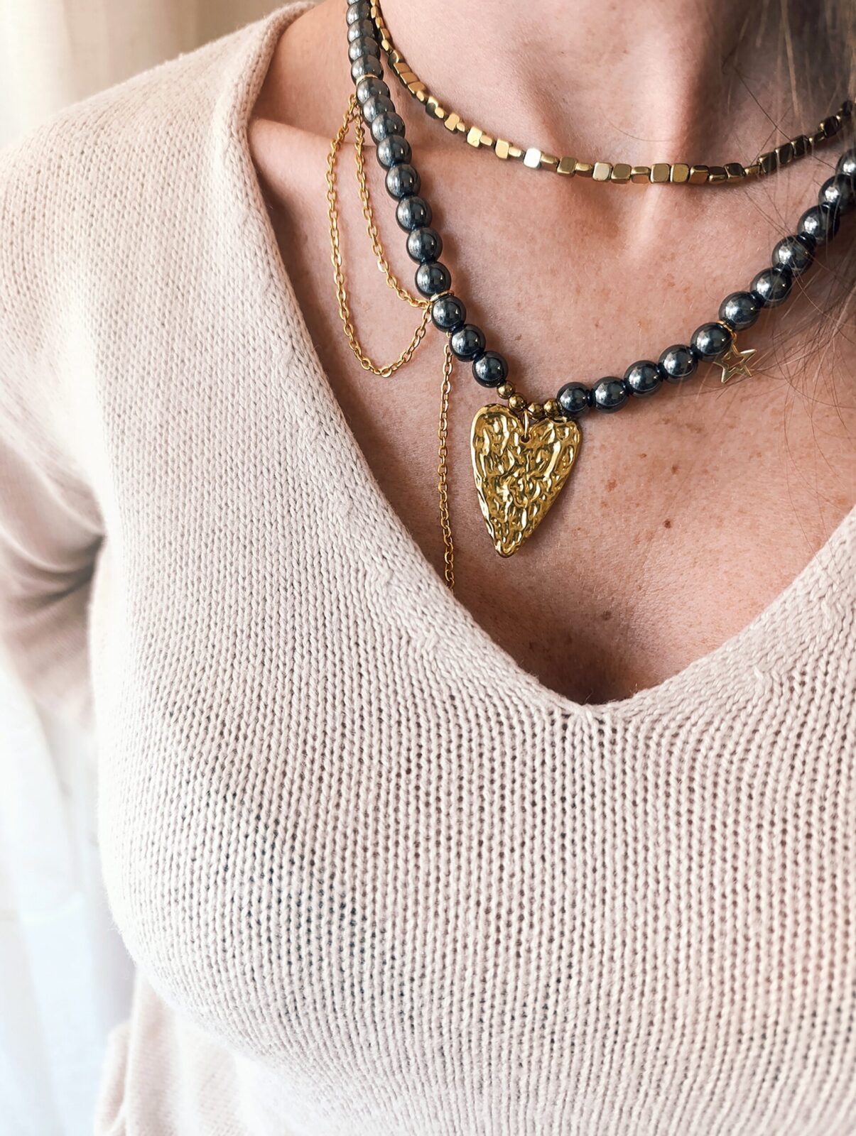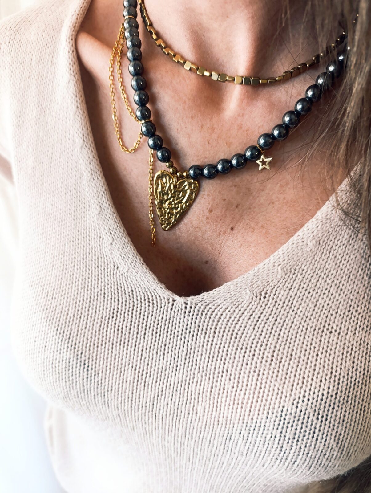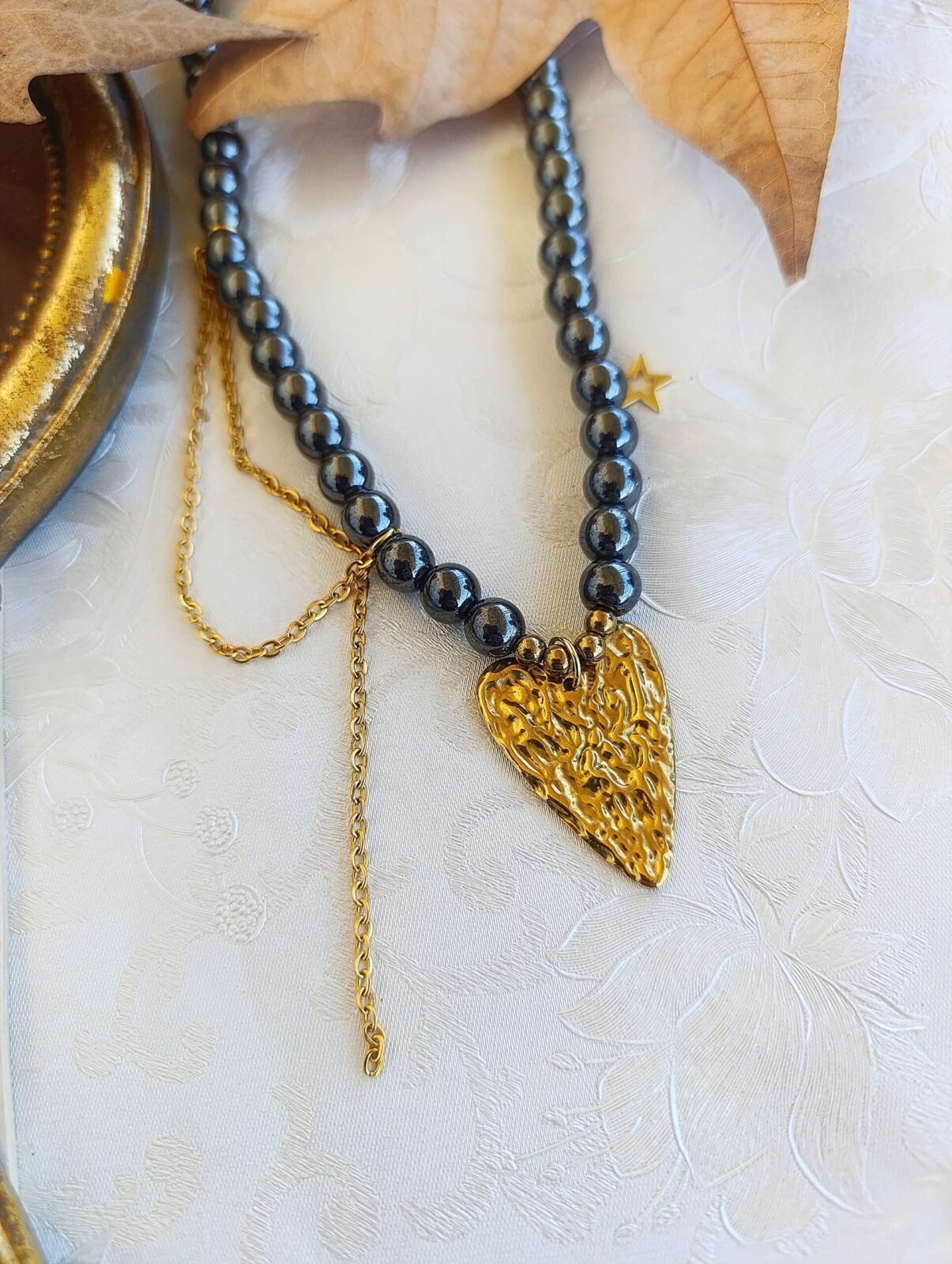 #kolie #hematite #heartjewelry #statementjewelry #goldtone #romanticstyle #modernjewelry #fashionjewelry #layering #boldstyle